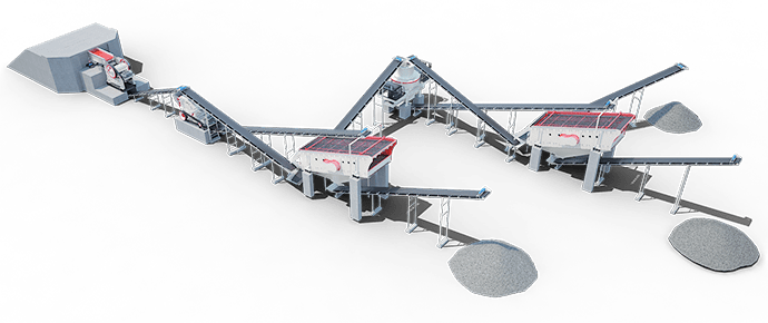 設(shè)備ZSW490×130給料機(jī)+PE-900×1200顎破+PF-1520反擊破+VSI1140制砂機(jī)+3YK3072振動(dòng)篩+輸送機(jī)